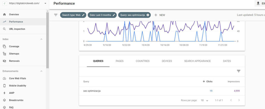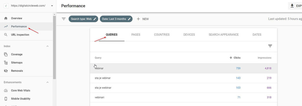 Kako biste razumeli za koje ključne reči se vaš sajt rangira, odnosno kako je Google prepoznao vaše stranice potrebno je prvo da prijavite sajt na Google Search Console ako to niste do sada uradili.